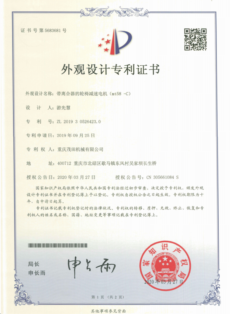 重慶茂田機械有限公司是國家級小巨人企業(yè)、國家高新技術(shù)企業(yè)、重慶市專精特新企業(yè)、重慶市知識產(chǎn)權(quán)優(yōu)勢企業(yè),致力于現(xiàn)代化山地農(nóng)業(yè)機械、各類非標減速電機及其控制系統(tǒng)的研發(fā)、生產(chǎn)、銷售。擁有重慶市市級研發(fā)平臺1個 目前研發(fā)、生產(chǎn)、銷售產(chǎn)品廣泛應(yīng)用于農(nóng)業(yè)機械、醫(yī)療康復(fù)設(shè)備、交通代步工具、智能搬運設(shè)備、以及機器人動力系統(tǒng)等領(lǐng)域。我們的產(chǎn)品具有完整的自主知識產(chǎn)權(quán),擁有多項專利技術(shù)及“重慶